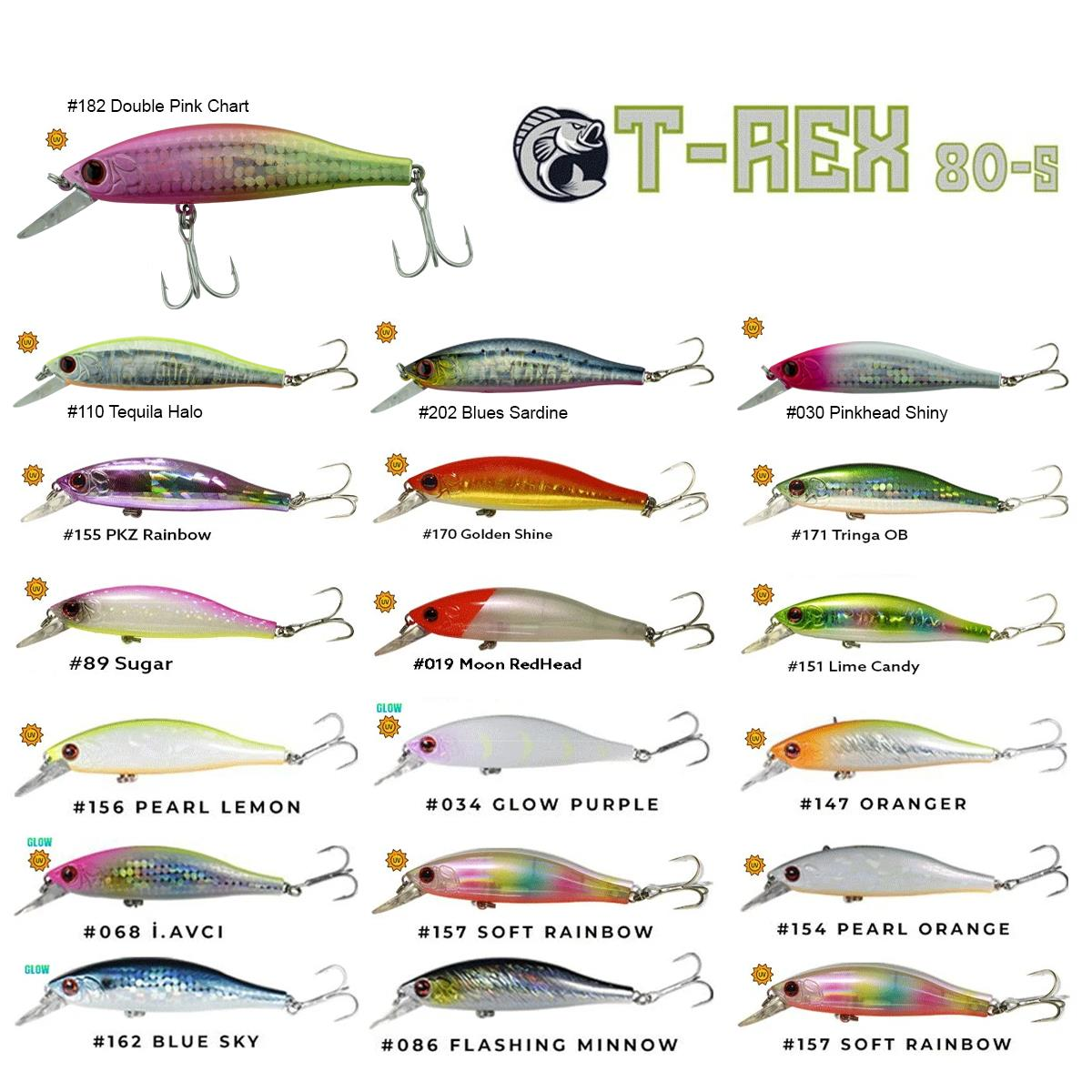 Fujin T-Rex 80S 11gr 80mm Maket Balık, Derin sayılabilecek bölgelerde spin avı yaparak levrek, lüfer, palamut, lambuka ve diğer tüm avcı balıkların avında kullanmak için tasarlanmış çok başarılı bir maket balıktır.